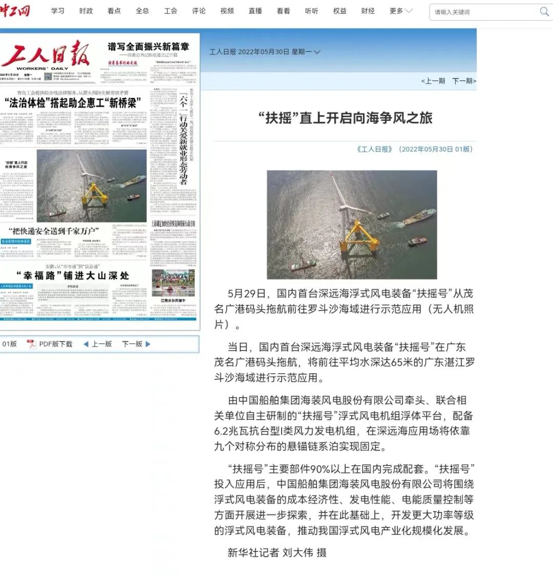 這是“扶搖號”繼機組、浮體下線后,再次取得的又一里程碑成果,將對我國海上風(fēng)電邁向深遠海,助力“30·60”雙碳目標(biāo)達成產(chǎn)生重大意義。