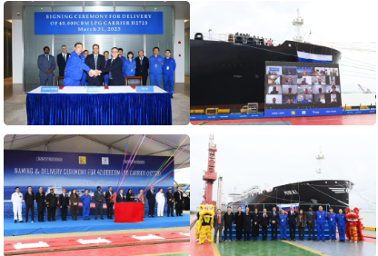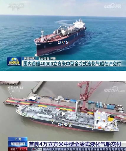 3月31日,中國船舶集團旗下江南造船聯合中船貿易為日本KUMIAI公司建造的40000立方米中型全冷式液化氣船(MGC)“MIRAI”號順利交付,中央電視臺《新聞聯播》 《新聞直播間》對此進行了報道。
