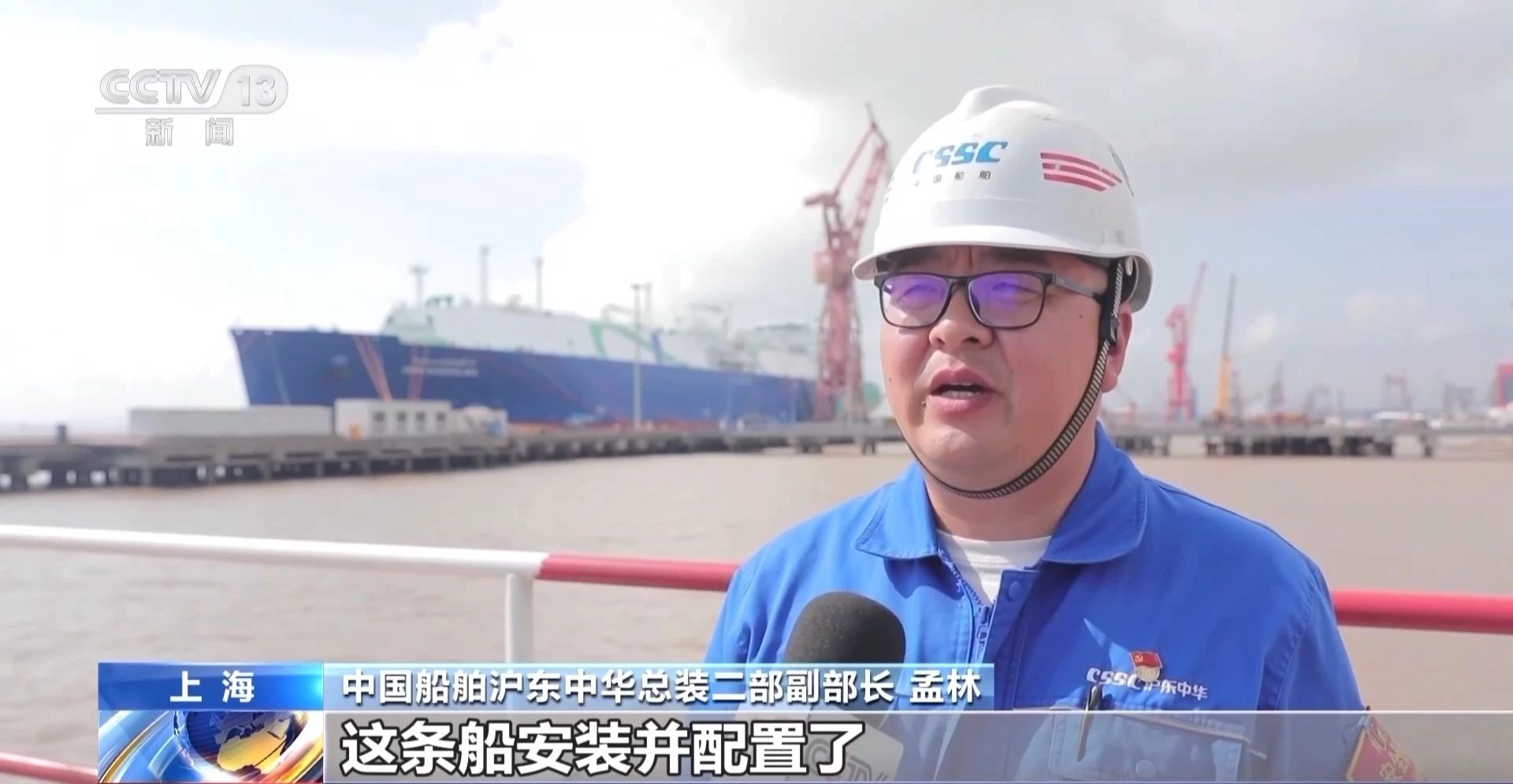 中國船舶滬東中華總裝二部副部長 孟林:這條船安裝并配置了全球首臺套再液化裝置,國內自主研發的廢氣再循環系統,能夠有效地提高能效,也能夠滿足國際上的T3排放標準。
