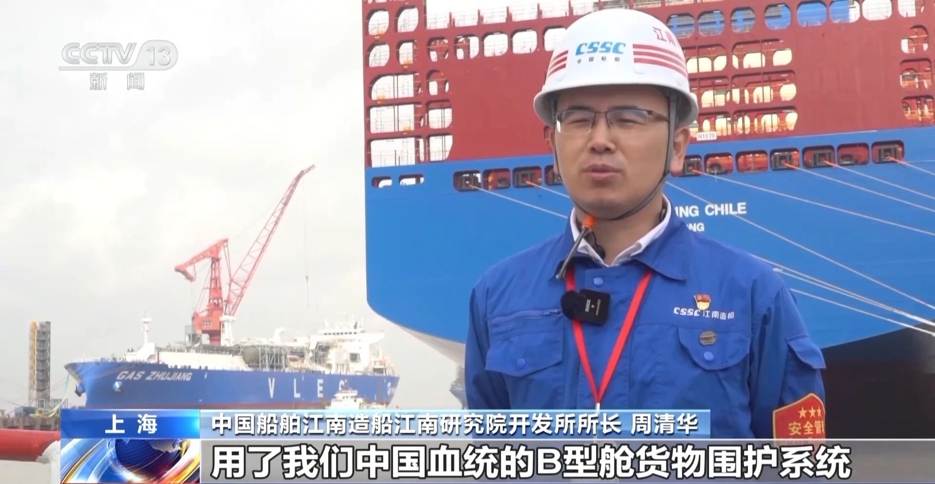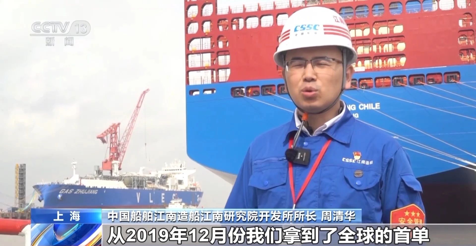 中國船舶江南造船江南研究院開發所所長 周清華:從2019年12月份我們拿到了全球的首單,時至今日,我們共承接了43艘超大型乙烷運輸船。目前已經交付和成功運營了7艘,整個市場占有率超過了80%,實現了全球領跑。