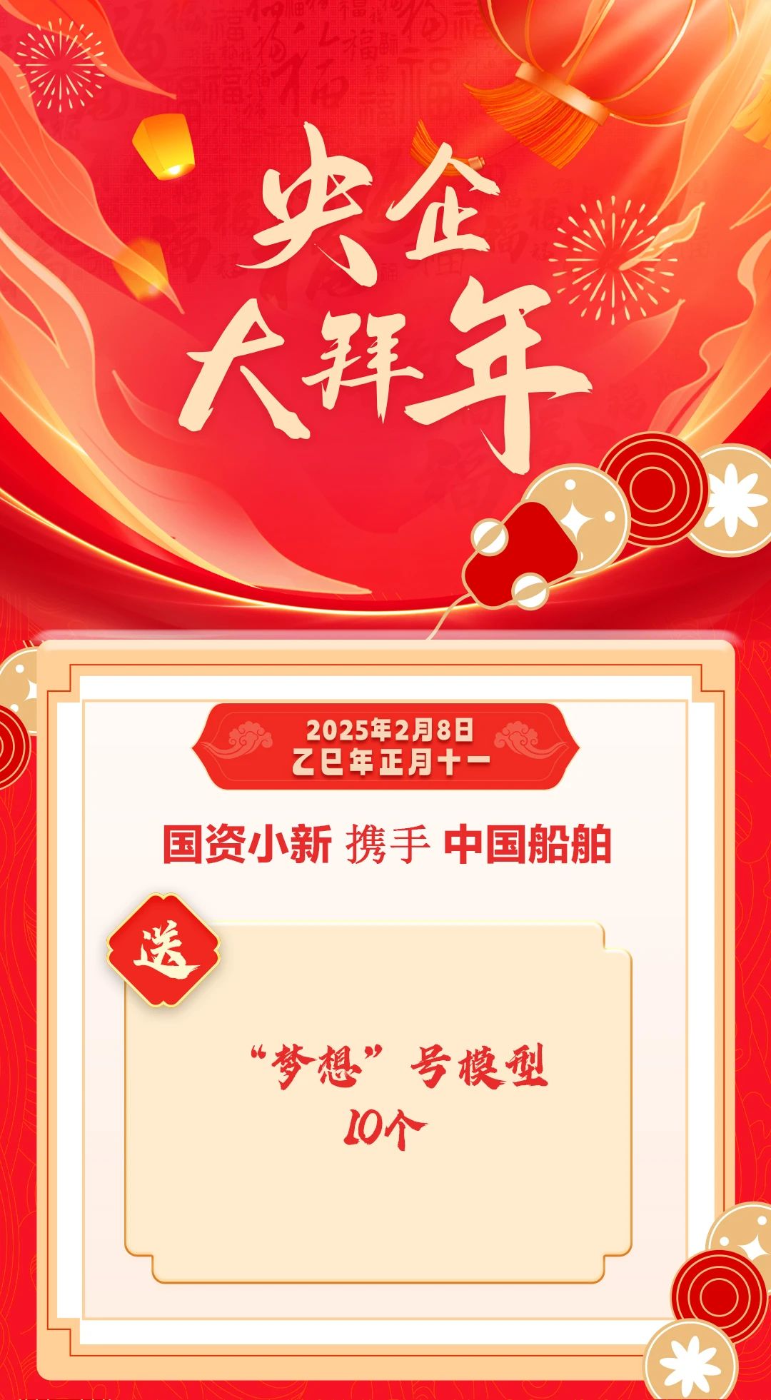 今天“國資小新”聯合中國船舶抽取10位幸運粉絲,送上“夢想”號純手工合金模型。