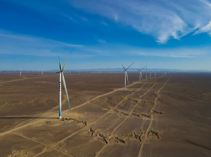 近日,中國船舶集團有限公司旗下中船科技為新疆華電天山北麓項目610萬千瓦新能源基地項目三標段供貨的100臺機組全部完成吊裝。